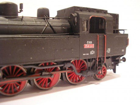 Hotový model levý bok detail"budkyů a parního potrubí pod ní